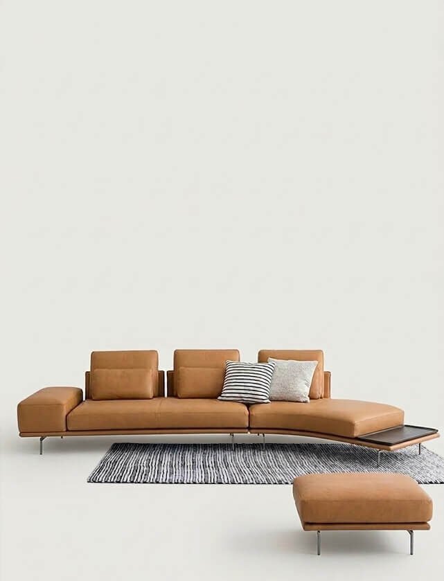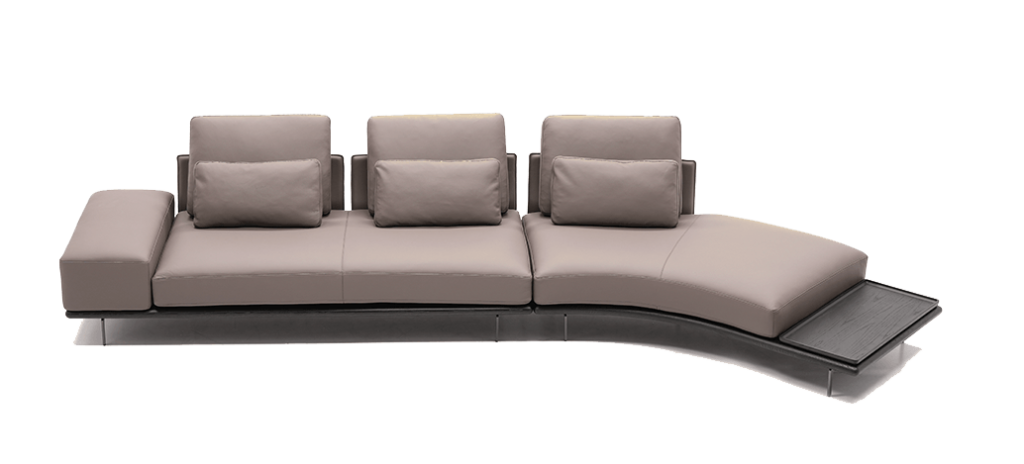 The result is a sofa that combines formal elegance with intelligent construction: a modular and flexible system where manufacturing simplicity becomes an integral part of the design. The combination of the thin base, discreet panels, and independent cushions creates a balance between design rigor and domestic comfort